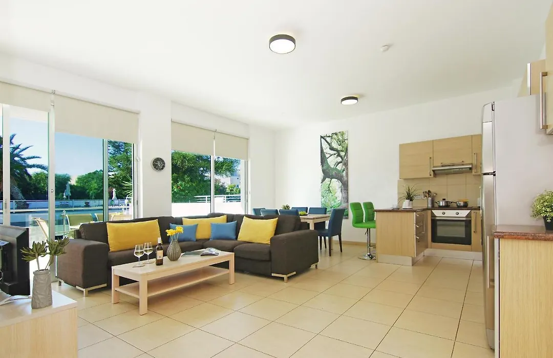 65 m^2 daire, Larnaka Uluslararasi havalimanına 70 km yakınlıkta bulunmaktadır. Konuklar, kiralık arabaları kullanabilirler. Ayrıca tesis bünyesinde güneşlenme terası, güneş terası, yüzme havuzu vardır.